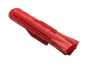 Крепежный элемент в совокупности с шурупом применяется для установления прочных фиксаторов в твердых основаниях (бетон, кирпич, керамика, керамзит-бетон, пенобетон). Выступающий с наружной стороны стены фрагмент вкрученного метиза используется в качестве держателя при закреплении навесных конструкций на основании (картины, панно, часы, крупногабаритные декоративные элементы, рекламные вывески). На внешней поверхности корпуса расположены три ребра жесткости, которые неподвижно фиксируются внутри материала, не разрушая его структуру. В профессиональных каталогах красный дюбель обозначается литерой «Т».